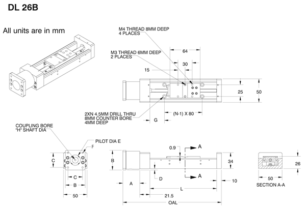 | Drive: Ball screw 6mm dia with 1 mm lead |
